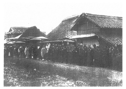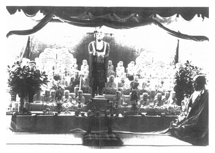 石像は弘法大師坐像を中心に、釈迦如来像、不動明王像などがあります。開眼式では多くの住民が参列し、その様子がわかる写真も残っています。